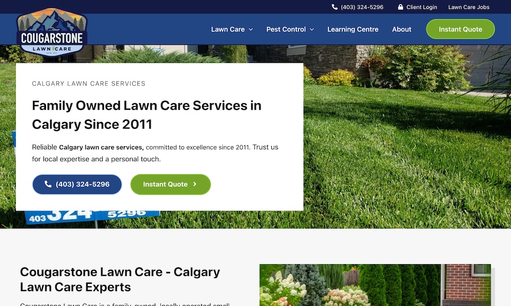 Cougarstone Lawn Care is a local, family-run lawn care company servicing Calgary since 2011. Focusing primarily on lawn care and exterior pest control, we strive to give our clients the best lawn care packages and prices in Calgary. Our lawn care services, from weed control to fertilization, are crafted to enhance the beauty and vitality of your lawn.