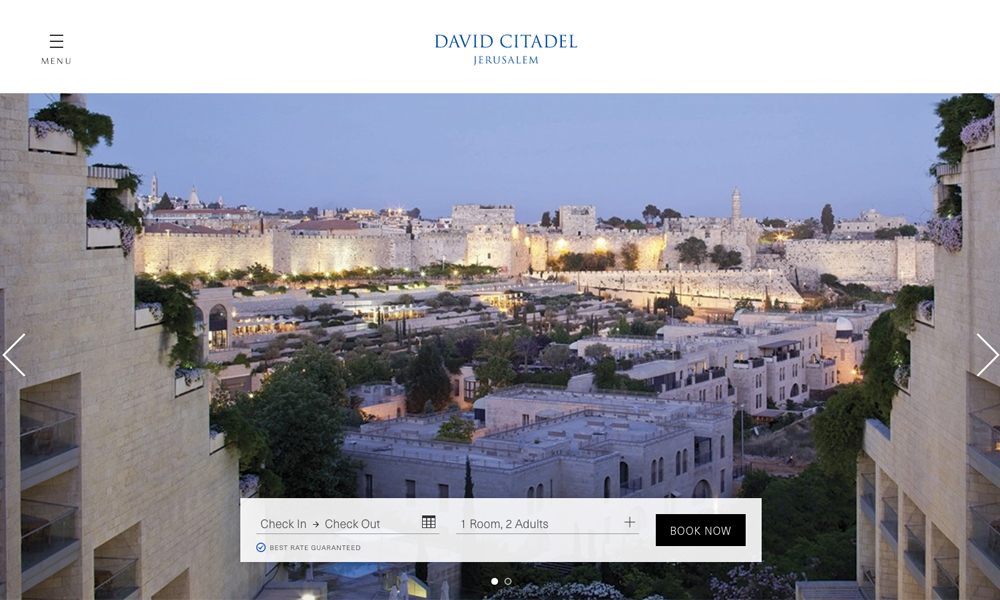 The David Citadel Hotel, with a majestic view of the Old City and now also completely non-smoking, is within walking distance from the city center and is situated directly across from Alrov Mamilla Avenue and other major attractions. The hotel boasts 384 impeccably designed suites and guestrooms, fine cuisine, a luxury gym and a holistic innovative spa, year-round heated pool, and private executive lounge. The hotel's exquisite modular banquet halls and reception rooms host a variety of social and business gatherings.