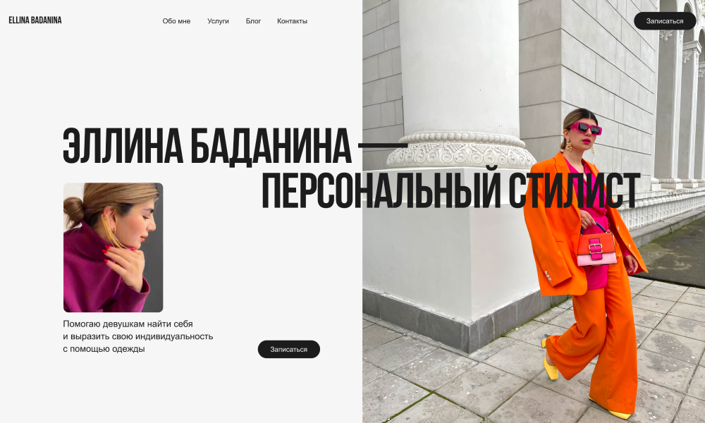 Redesign of the website due to a change in Ellina's marketing positioning. The new concept is "a unique style for experts and entrepreneurs who want to be a little extra". Black and white base with brightful photos and dynamic gifs.