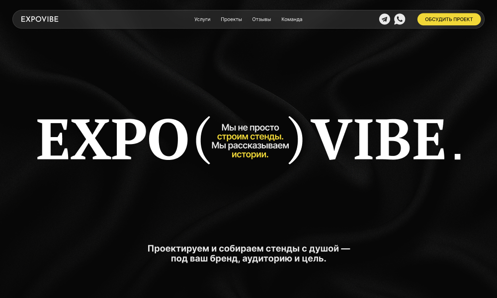 A showcase website for EXPOVIBE — an exhibition stand builder. Bold visuals, strong storytelling, and a touch of backstage magic.