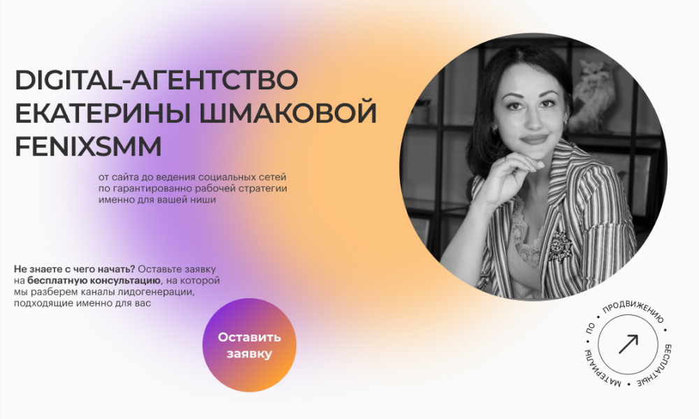 Redesign of the website for the digital agency of Ekaterina Shmakova. The agency promotes business on the Internet and social networks.