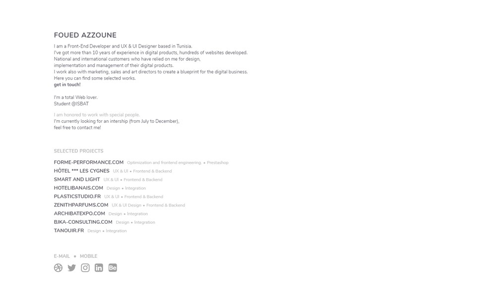 I am a Front-End Developer and UX & UI Designer based in Tunisia. I've got more than 10 years of experience in digital products, hundreds of websites developed. National and international customers who have relied on me for design, implementation and management of their digital products