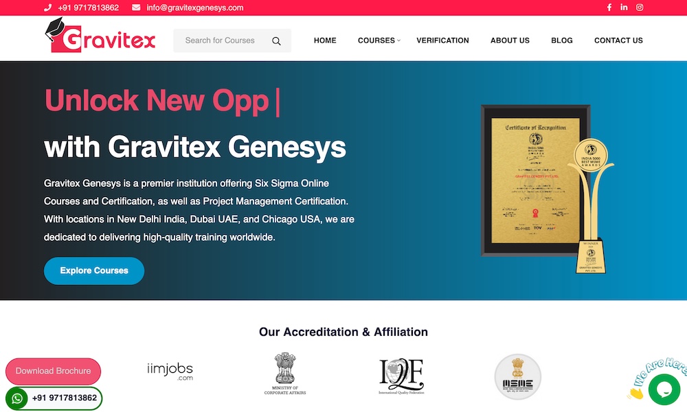 Gravitex Genesys provides professional training programs with experienced instructors and is consistently a great place in the development of beyond classroom training for students and working professionals. We at Gravitex Genesys are also committed to provide live-call mentor support to answer queries or doubts and take care of the needs of all our Students/Professionals. Our courses Six Sigma Green Belt, Six Sigma Black Belt, Six Sigma Combo Course, Total Quality Management Course, PMP Certification Training Course and Digital Content Writing Course takes your career to the next step.