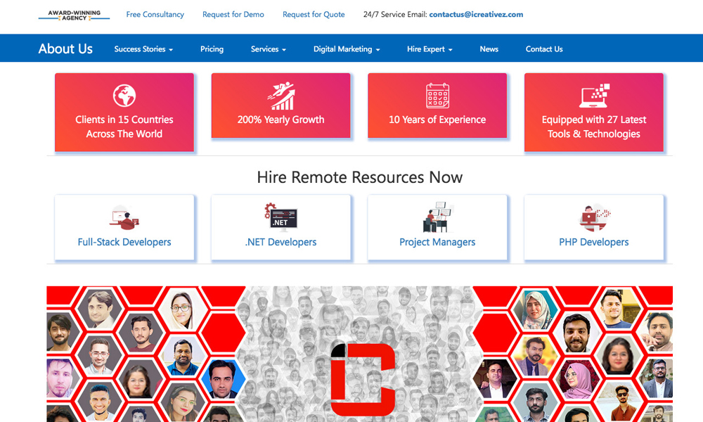 Icreativez is a professional IT company based in Pakistan. We provide services worldwide and have trusted clientele in over 15 countries, including the USA, UK, NA, Oceania, and Asia. We have a highly skilled team that provides solutions to all your IT needs. We excel in Website, Mobile & Desktop App Development, SEO, and Digital Marketing services. We have the Best SEO Expert.