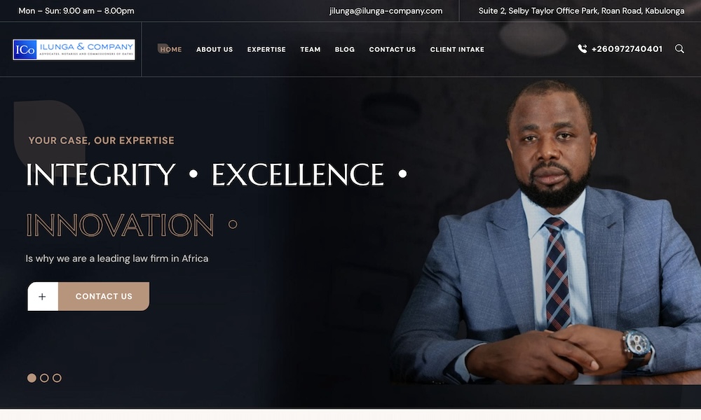 Ilunga & Company is a modern regional Commercial Law Firm based in Zambia's vibrant capital, Lusaka. Our reach extends across Central and Southern Africa, offering comprehensive legal services. With a dynamic team of dedicated lawyers, we specialize in various legal areas, including Energy and Infrastructure Projects, Commercial Litigation, Corporate Advisory, Taxation, Real Estate, and more. Our commitment lies in providing effective solutions tailored to our clients' needs.