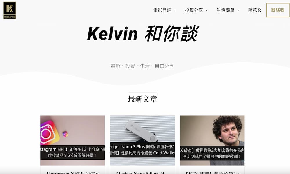 Kelvin 和你談是 Kelvin 的個人網誌,是一個讓他自由創作和盡情分享的空間,內容包括電影影評、投資分享、日常生活點滴。