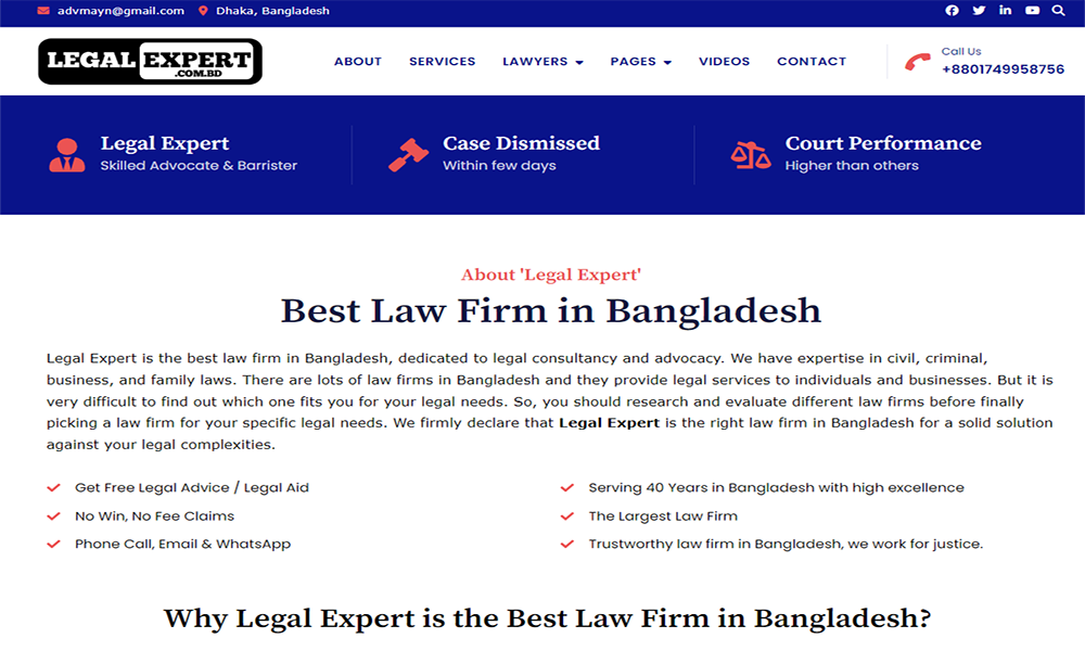 Legal Expert is the best law firm in Bangladesh, dedicated to legal consultancy and advocacy. We have expertise in civil, criminal, business, and family laws.