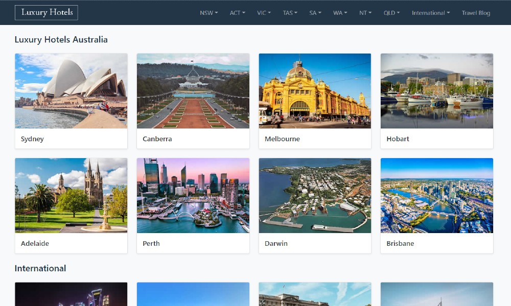 Luxury Hotels Australia is Wordpress based website that was coded using the Bootstrap 5 framework. The site also uses custom Google Fonts for unique rendering of text.