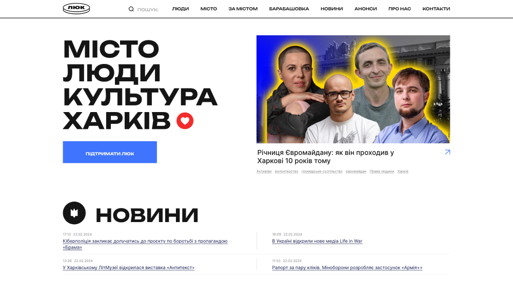 Lyuke is an independent Ukrainian online media outlet that introduces Kharkiv residents to the culture of modern times, covers urban processes and problems, encourages changes in the city and society, and brings together a community of change-makers and active people.