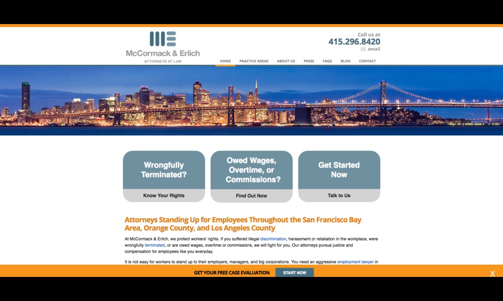 At McCormack & Erlich, we protect workers’ rights. If you suffered illegal discrimination, harassment or retaliation in the workplace, were wrongfully terminated, or are owed wages, overtime or commissions, we will fight for you. Our attorneys pursue justice and compensation for employees like you everyday.