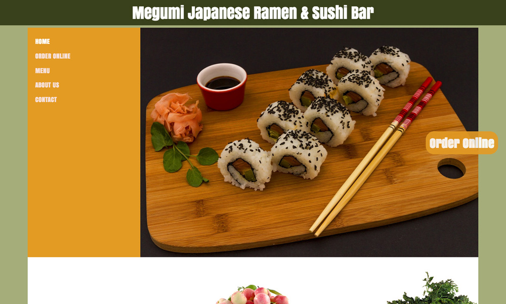 Megumi sushi is a restaurant that offers great sushi and other menu items. This menu offers a range of traditional and creative dishes such as kobe beef filet and takoyaki.