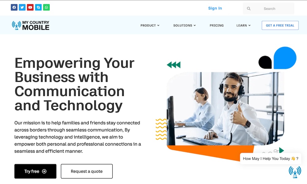 My Country Mobile is on a mission to revolutionize telecom operations and help businesses unlock their full potential. Our comprehensive suite of AI powered tools includes a powerful Chatbot, a Cloud Contact Center, advanced International Calling Mobile App, Bulk SMS Marketing, Fintech solutions, secure Money Transfer services, Gift Cards, Top-up solutions and VoIP Termination. All our telecom solutions are designed to seamlessly meet the demands of your telecom operations while providing superior customer engagement and boosting efficiency. Join us now and experience the power of telecom innovation like never before.