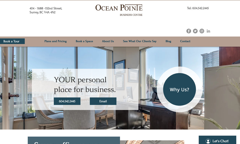 Since opening in 2001, Ocean Pointe Business Centre (OPBC) has been providing serviced offices, a business lounge, conference facilities and administrative services to local companies on the Semiahmoo Peninsula. In 2012, Katherine De Vita acquired the business and has been operating it along with Susan Laurio, Office Manager ever since. Through the many years, OPBC has had the privilege of being a professional support to over 300 local and internationally - based companies, ranging from new start-ups to established firms.