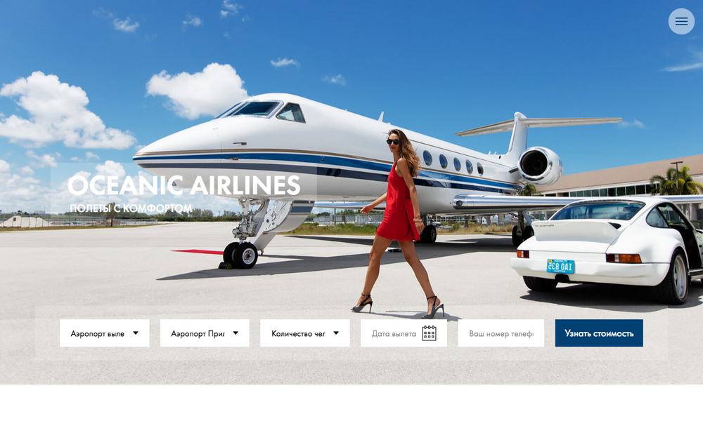 Website for a private airline. Ocean Airlines provides services for international and intercity flights by business jets