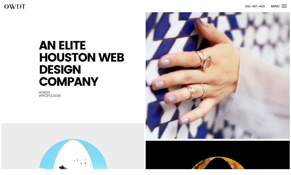 OWDT's all new minimalist redesign. This website uses a Wordpress template, fresh design and subtle transitions all while positioning the client front and center. Look no further as to why why OWDT has been gaining ground in Houston's competitive web design market. All in all this is an ultra sleek design.