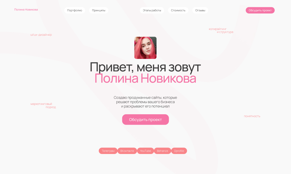 A portfolio site that shows in detail examples of work, my services, features of cooperation and cost.