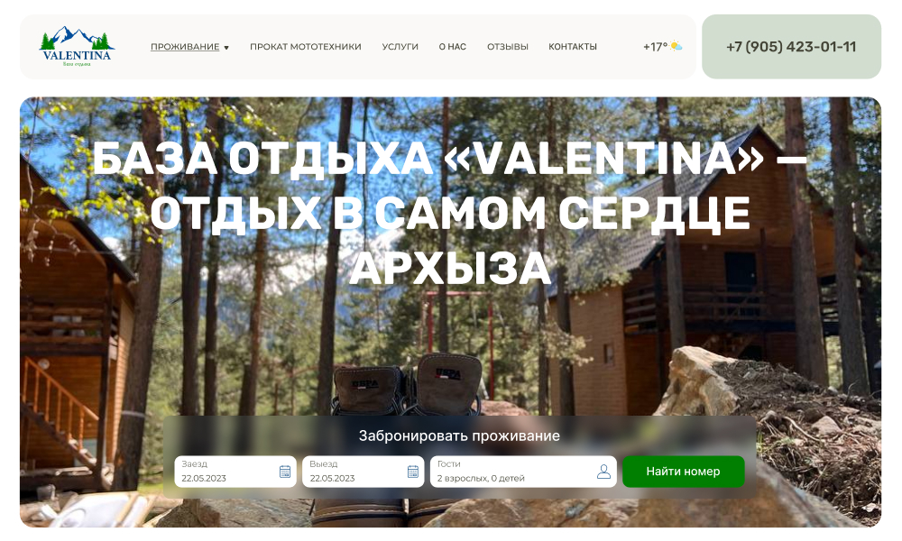 Site for a recreation center in Arkhyz with the possibility of booking online