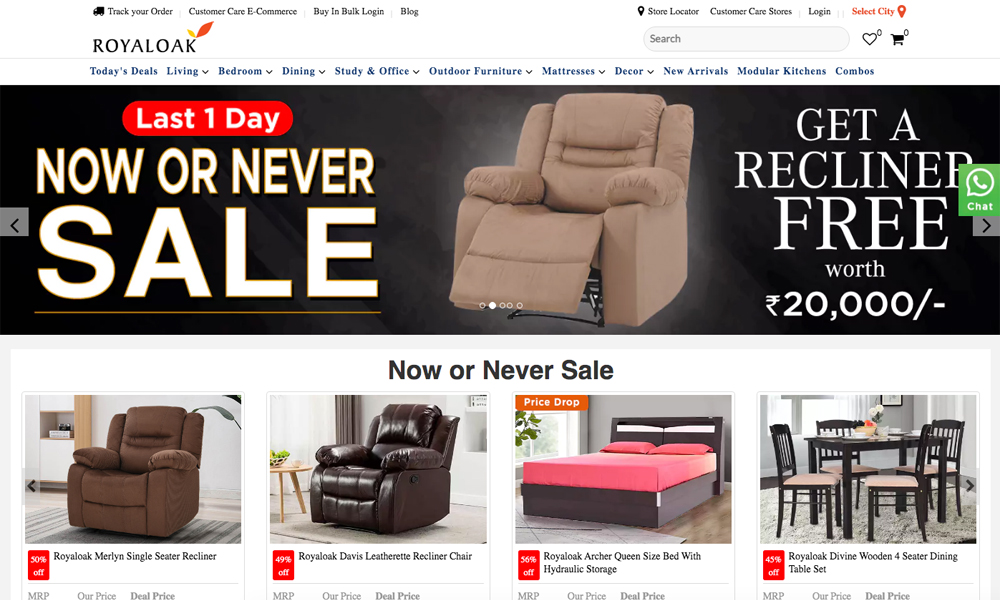 RoyalOak is a renowned furniture producer, with a presence in almost every major city across India. RoyalOak's other major credentials include producing quality furniture at an affordable price. RoyalOak has become one of the biggest sellers of furniture in India, where its products can be purchased from RoyalOak furniture showrooms or online.