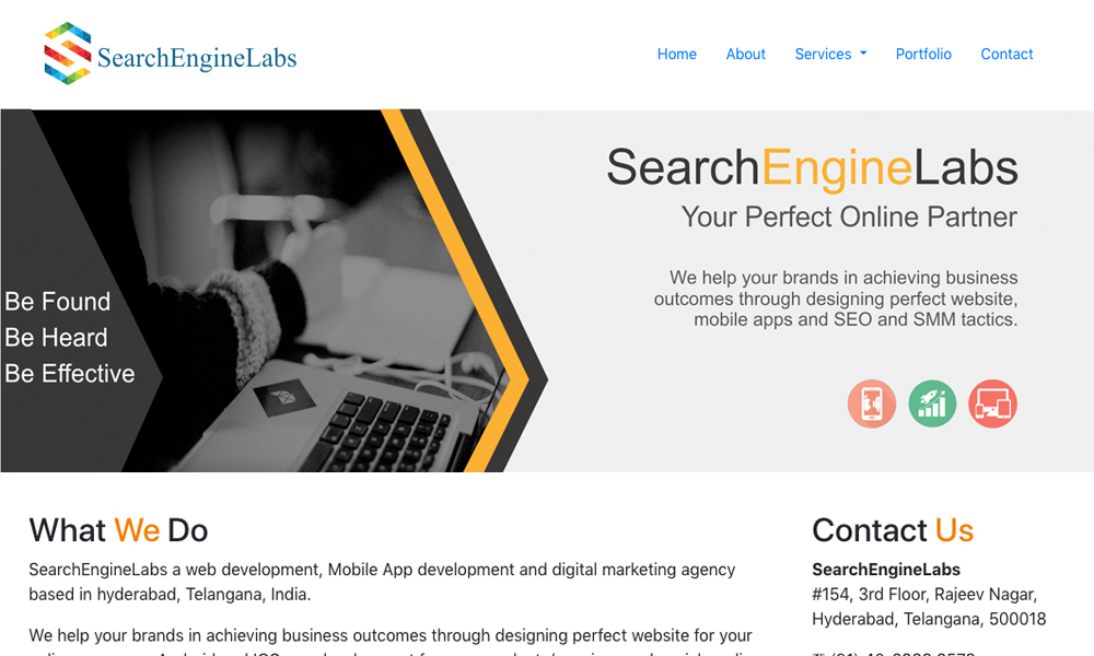 SearchEngineLabs a Web Development, Mobile App Development and Digital Marketing agency based in Hyderabad. We are one of the finest leading Tech-Centric Digital Marketing agencies focused on creating great experiences that deliver results. We help your brands in achieving business outcomes through marketing tactics based on deep analytics and customer journeys. SearchEngineLabs has set itself apart from competitors by providing our business partners effective, honest, and most importantly sustainable Web Development, Mobile App Development and Digital Marketing services.