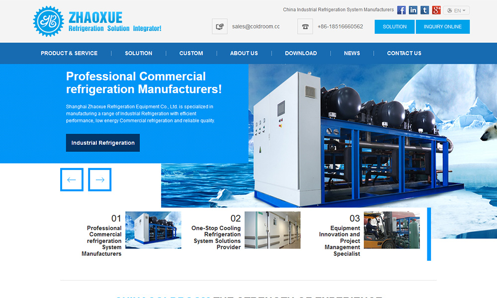 As a famous Industrial refrigeration Manufacturers and Refrigeration System Suppliers,Shanghai Zhaoxue Refrigeration Equipment Co., Ltd. is specialized in condensing unit engineering and equipment manufacturing for over 20 years. By constantly introducing international advanced technology to meet customers’ requirements, chinacoldroom provides all sizes of refrigerated cold room solutions and a wide range of refrigeration unit, including Industrial refrigeration, commercial refrigeration,Commercial refrigeration,refrigeration system, refrigeration unit, refrigerated warehouse, etc.
