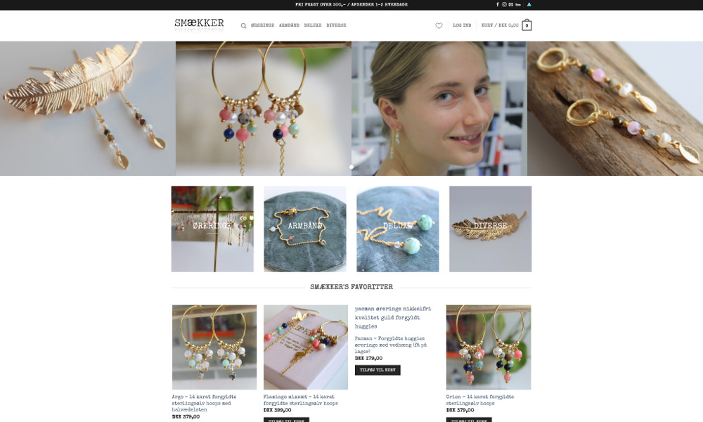Smækker er en lille familieejet virksomhed, som er opstartet i september 2019. Vi fremstiller kvalitetsøreringe på eget værksted af udsøgte og håndplukkede materialer. Vore smykker er hovedsageligt fremstillet af 14 karat guld.