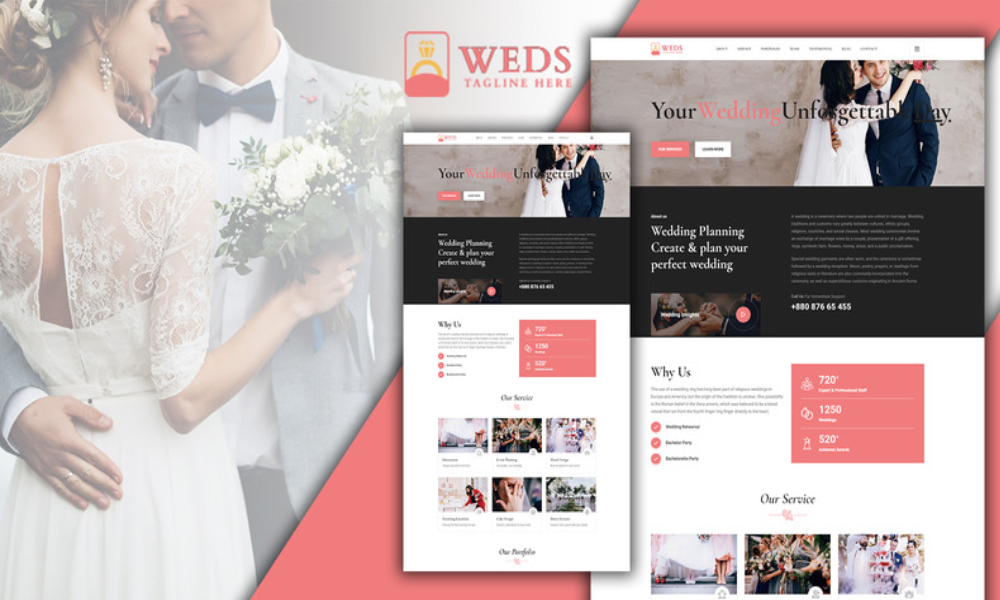 The website is perfectly adapted to the target group and its shapes and colors fit modern image styles of wedding photographers.