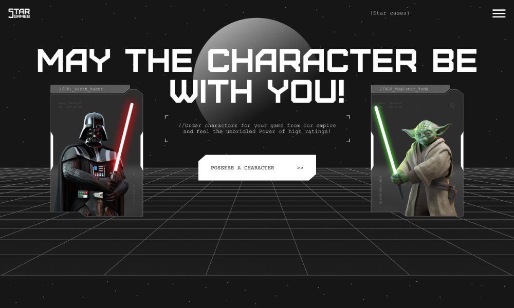 Website of a studio that designs 3D characters for games. The project is made in the style of Star Wars.
