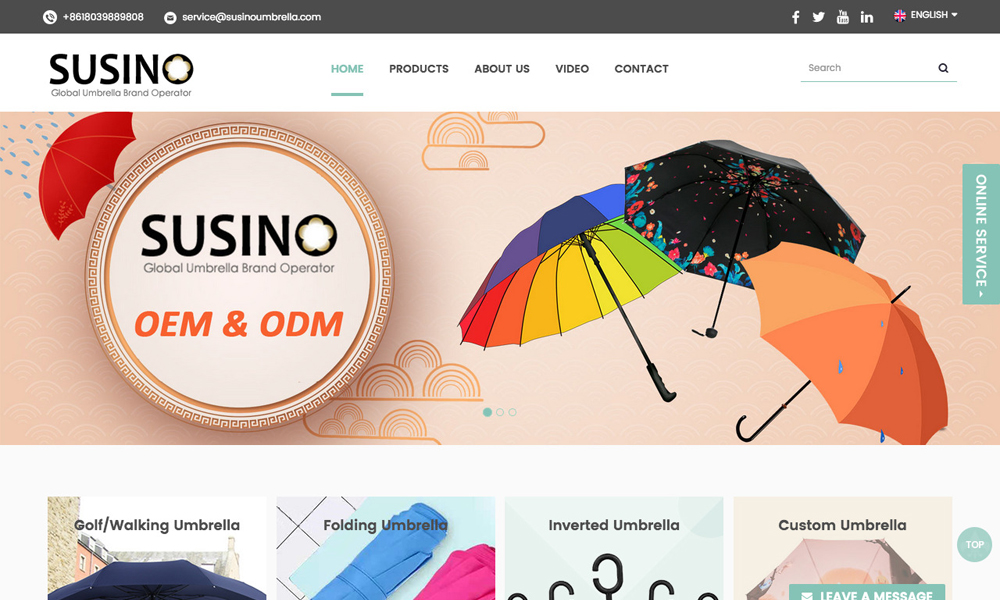 Susino Umbrella Limited Company, the umbrella manufacturing headquarter, is located in Andong Industry Zone, Jinjiang Economic Development Area, Fujian Province, China and generates around 1 billion RMB a year.Susino Umbrella Limited Company was listed in 2007 at Shenzhen Stock Exchange with the stock symbol: 0021174, Susino Umbrella, becoming the first listed company in China’s umbrella industry. As the biggest umbrella company in the industry with the most impeccable product chain.