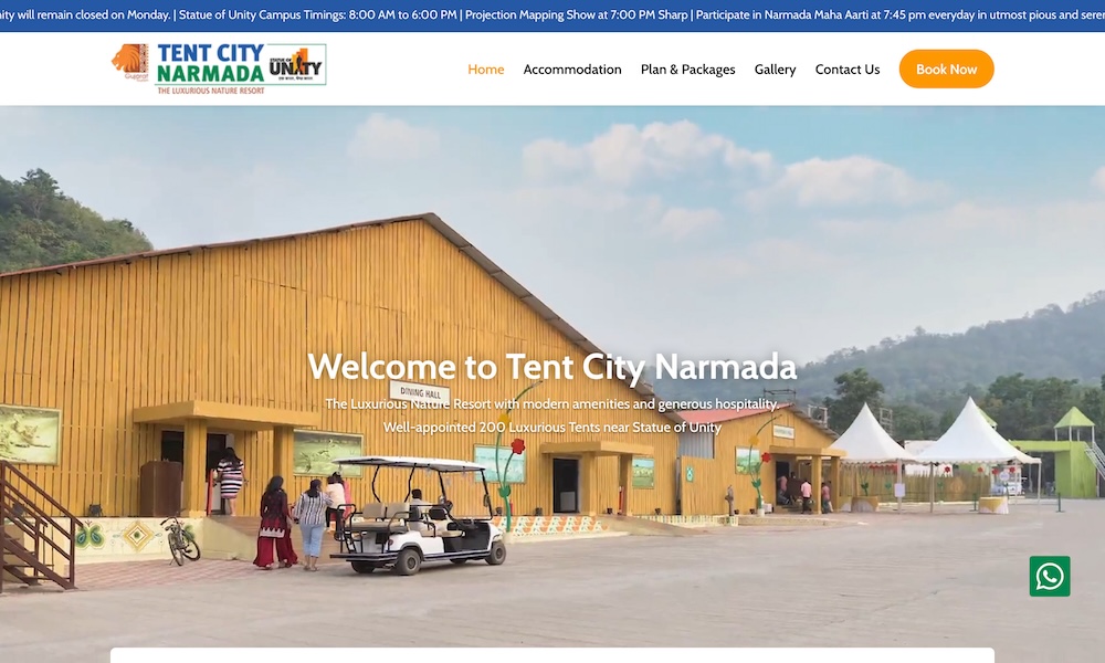 Tent City Narmada near Sardar Sarovar Dam is great place for Tourist Accommodation. It is the most preferred and affordable accommodation near Statue of Unity. You can enjoy One Night & Two Night all Inclusive package option with Stay, Food and Sightseen. Providing all-in-one-nature experience with well-appointed Unique Tents with wide variety options. This will be a perfect natural retreat for all weekends, special occasions, educational trips, conferences and all kinds of trips.