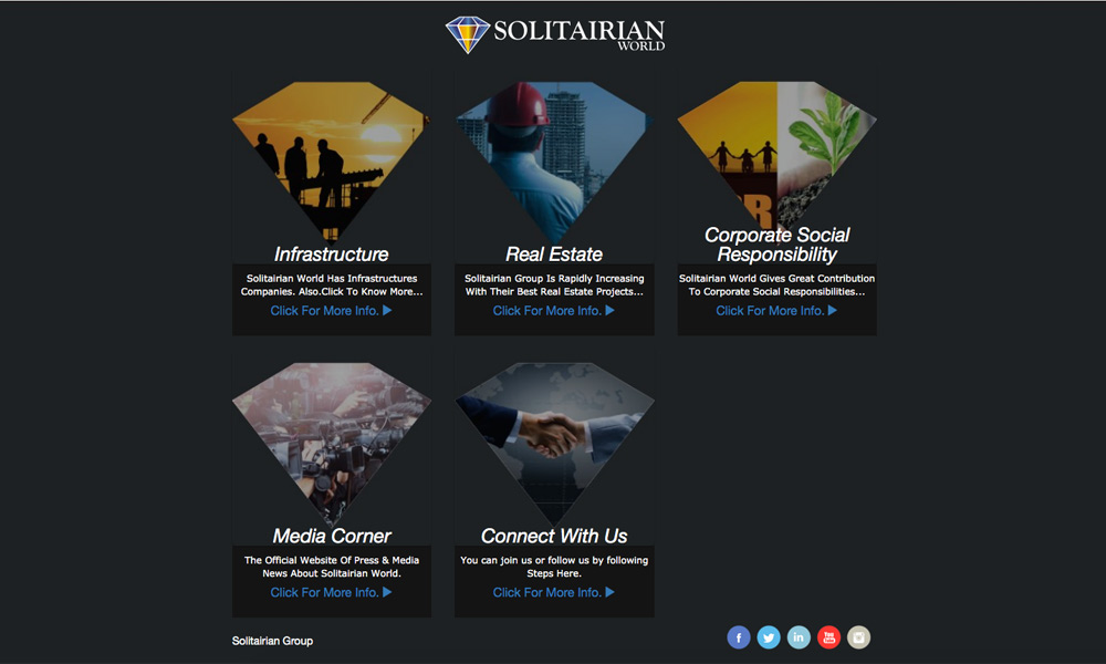 | Solitairian group is a conglomerate of highly—committed professionals operating in the fields of real estate, infrastructure, construction and manufacturing. With over 25 years of industrial experience, Solitairian world has to its credit a variety of projects covering construction of roads, electricity sub stations, bridges, government drains, sewage treatment plants, and underground sewerage lines. Email id: marketing@solitairianworld.com , Visit Now: http://www.solitairian.com/ |