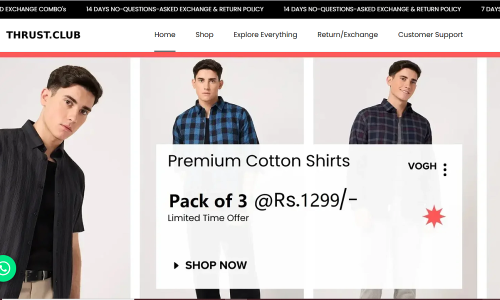 Thrust.club is your go-to destination for modern men's fashion that perfectly blends style with comfort. We're passionate about crafting high-quality apparel, from sleek everyday shirts to versatile cargo joggers, designed for the contemporary man who wants to look sharp and feel great, no matter where the day takes him. Discover effortless style and premium comfort, all curated for your dynamic lifestyle.