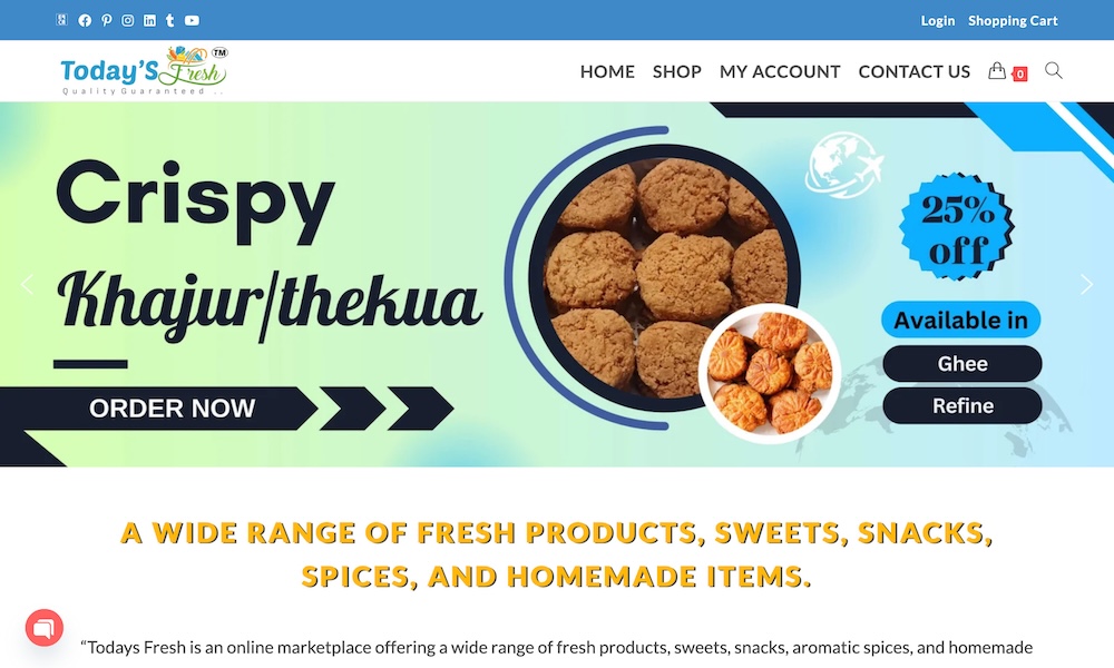 Today’s Fresh is an online e-commerce one-stop-shop of all types of local fresh items from Bihar, like handmade, organic, pure, natural, and Desi products that everyone needs to make their life a little longer and healthier through our exclusive products.