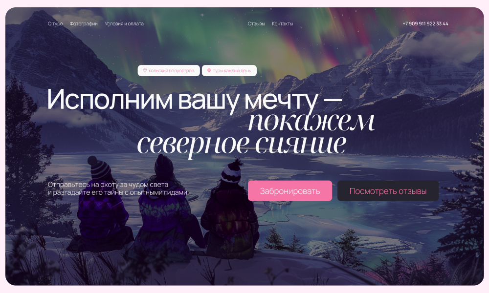 The website shows in detail all the advantages of the company and information about the tour.