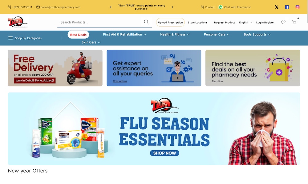 Truth Care Pharmacy recognized as the foremost Online Pharmacy in Qatar, dedicated to providing an extensive range of healthcare products with unmatched convenience and reliability. Offering fast and efficient 24x7 express delivery, Truth Care Pharmacy ensures that essential medicines and health items are just a few clicks away, delivered directly to your doorstep. Whether you're looking for prescription medications, over-the-counter treatments, or personal care essentials, Truth Care Pharmacy is your go-to source for all healthcare needs. Truth Care Pharmacy complete healthcare products includes, Vitamins & Supplements, Medicines, Hair Care, Oral Care, Mother & Baby Care, and Healthcare Machines & Equipment, covering everything needed for a healthy and balanced lifestyle. By sourcing products only from reputable manufacturers, Truth Care Pharmacy guarantees safety, quality, and affordability with every purchase. Whether it’s daily health supplements or specialized medical equipment, every item is carefully selected to meet the highest standards. Experience the difference with Truth Care Pharmacy, the best online pharmacy in Qatar. Take advantage of the convenience, reliability, and comprehensive healthcare selection today.