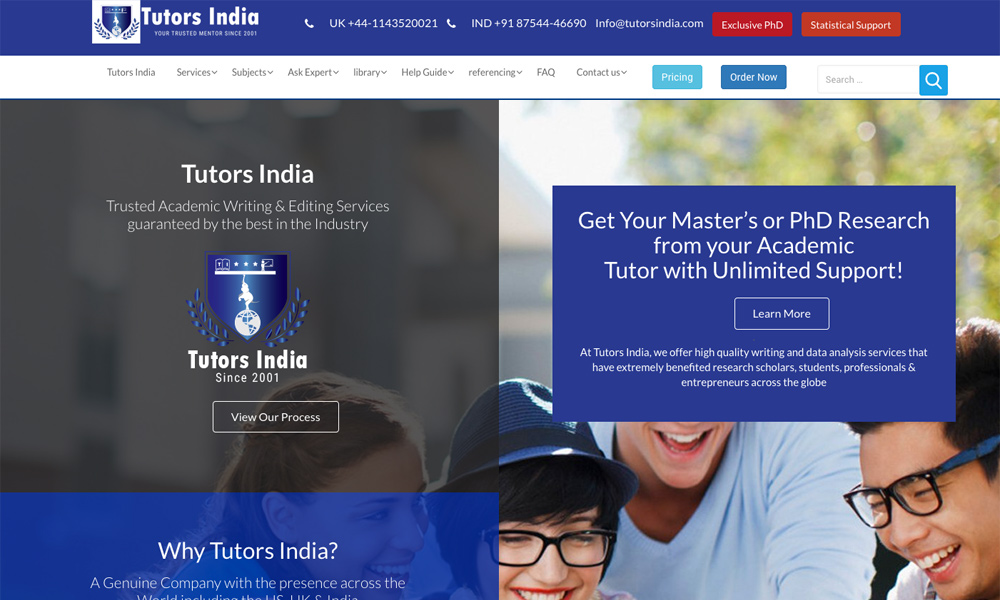 Tutors India, is world’s reputed academic guidance provider for the past 15 years have guided more than 4,500 Ph.D. scholars and 10,500 Masters Students across the globe. We support students, research scholars, entrepreneurs, and professionals from various organizations in providing consistently high-quality writing and data analytical services every time. We value every client and make sure their requirements are identified and understood by our specialized professionals and analysts, enriched in experience to deliver technically sound output within the requested timeframe. Writers at Tutors India are best referred as 'Researchers' since every topic they handle unique and challenging.