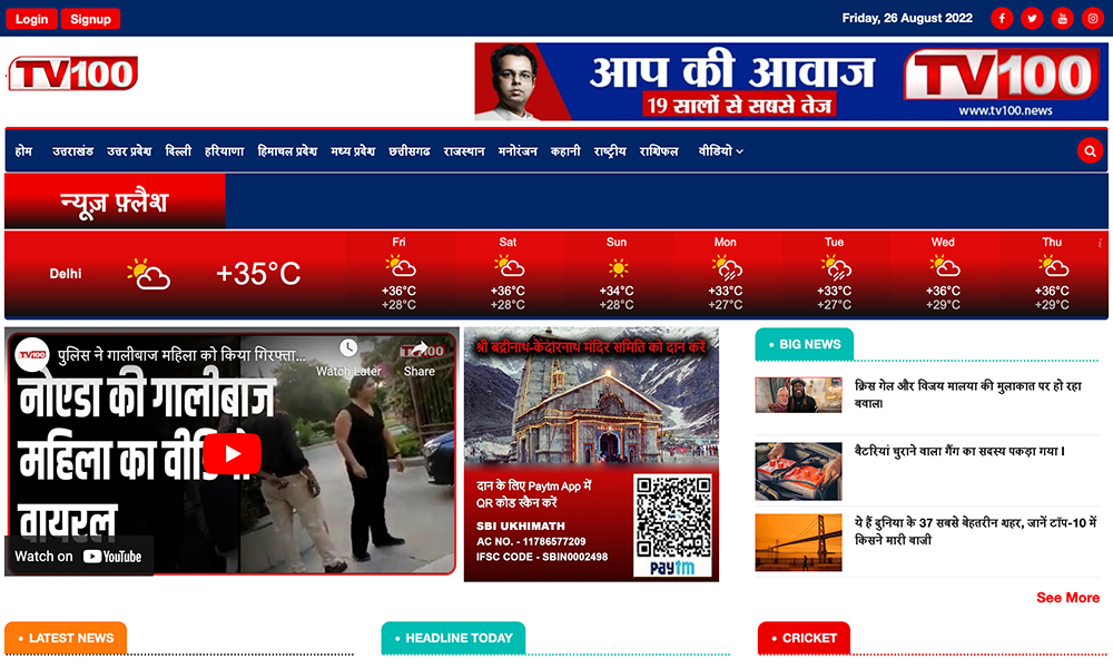 Over 19 years of Tv100news channel, One of the best news channel that gives you the fastest and latest news. Tv100news believes in providing only informative and real news. For any updates, you can visit our official website www.tv100.news.