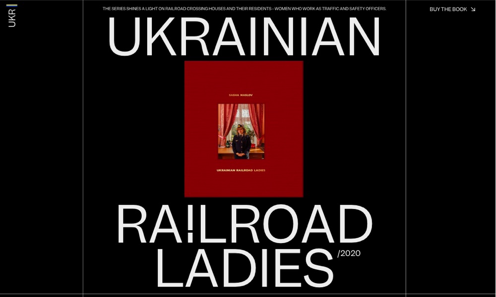 Promo website for a book that features railroad crossing houses and their residents — Ukrainian women who work as traffic and safety officers. Designer: Zhenya Rynzhuk Developer: Jason Bradley