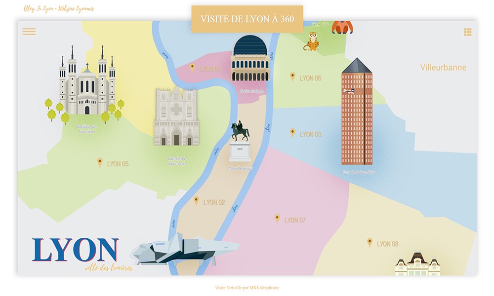 Lyon Virtual Tour is a mini site made for Blog In Lyon - Webzine Lyonnais by MKS Graphisme.