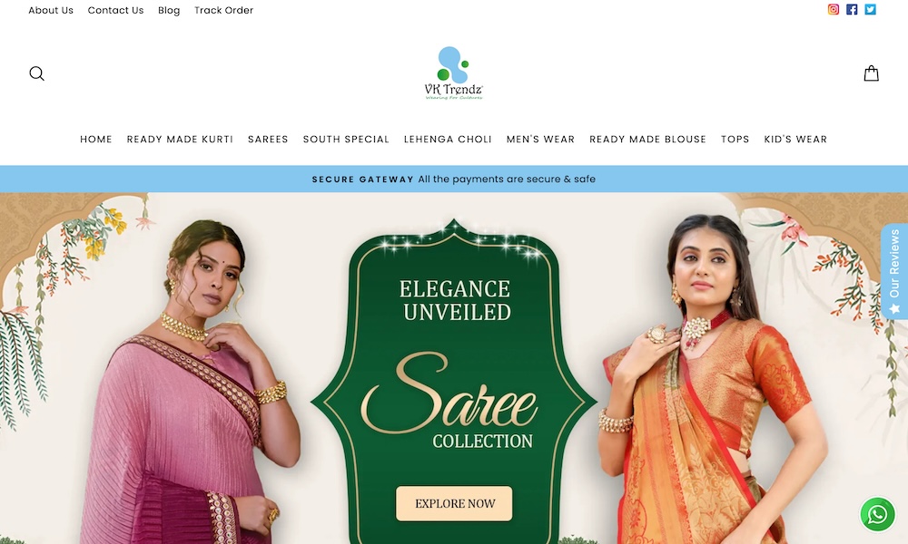 Discover the allure of timeless elegance at VKTrendz, your premier destination for ethnic fashion. From enchanting sarees that weave stories of tradition to glamorous party wear that dazzles under the spotlight, our collection caters to every taste. Embrace sophistication with our curated Kurtis and indulge in the regal splendor of our Lehenga Cholis. Elevate your style quotient with VKTrendz today!