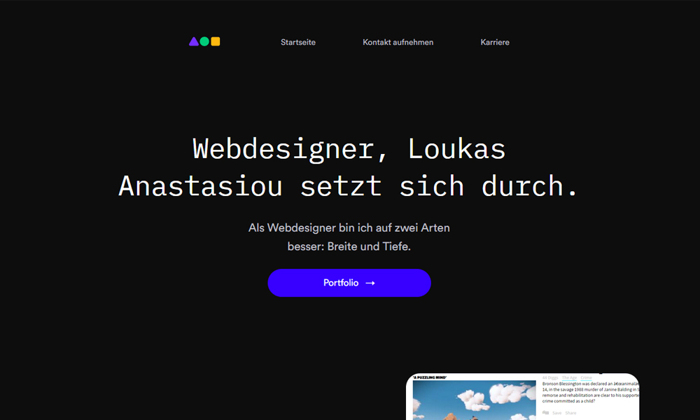 Ich bin ein erfolgreicher Webdesigner und will mehr. Ich setze nicht nur Fachwissen ein, sondern denke vor, mit und nach. Ich gebe erst Ruhe, wenn auch beim Kunden der Funke überspringt.