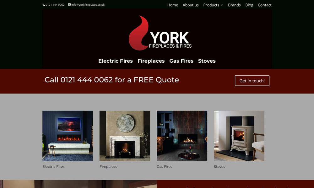 Based in Birmingham UK, York Fireplaces stocks a wide range of domestic gas, electric and stove fires and fireplaces. From nostalgic traditional pieces to contemporary, cutting edge designs, all tastes and budgets are catered for. Their company website strikes an effective balance between intuitive, functional design and aesthetics that showcase their range of products beautifully.<!-- notionvc: daf4d9b8-b837-410d-af06-f0df2443f583 -->