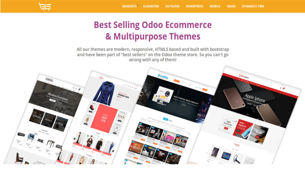 Get a collection of some of the best Odoo ecommerce and multipurpose themes based on HTML5 and built with bootstrap. Suitable for various industries and product types.