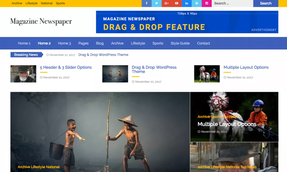 Magazine Newspaper is one of the best Free Magazine Newspaper WordPress Theme for newspaper, media, blogging, magazine related project. This theme is a minimalist and fully responsive multipurpose theme with full WordPress Customizer integration, that enables you to customize your website with live preview. This theme is very lightweight and easy to use.