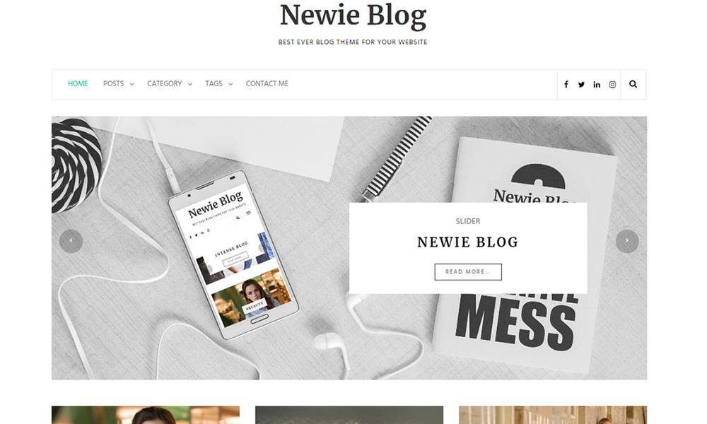 Newie is simple, clean and elegant WordPress Theme for your blog site. This theme comes with the slider, promo section, copyright options and social options. In addition, this theme has added the custom widget for the recent post, author, and social menu. Use this awesome WordPress theme for your blog site, you will never look for the alternative. emo: http://demo.paragonthemes.com/newie/