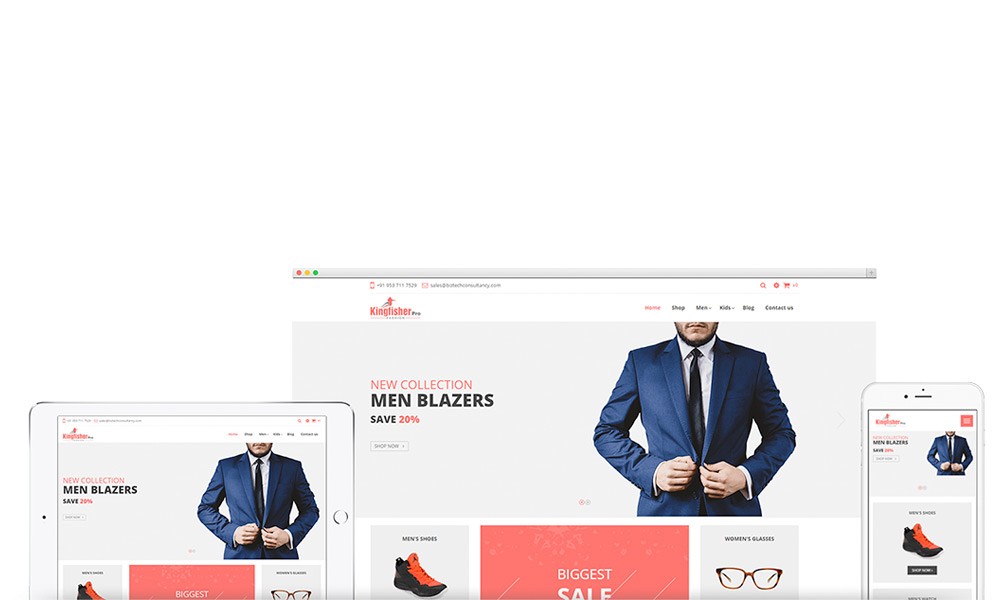 Kingfisher Pro Fashion continues the legacy of our best selling Odoo ecommerce theme Kingfisher Pro. Kingfisher Pro Fashion is also a HTML5 Bootstrap ecommerce theme designed for fashion and apparel industry.
