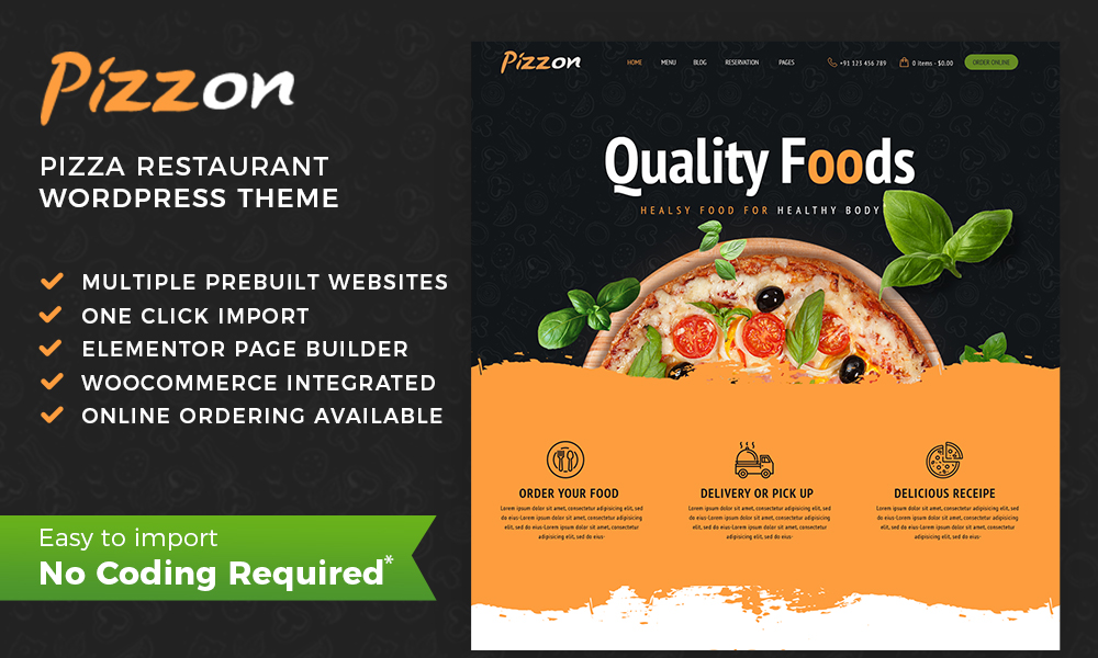 Pizzon is a professional Restaurant template, fully loaded with useful sections that deals with pizza menu, online food ordering, restaurant menu that can be used by every person or company that deal or want to start a business in this field. Pizzon is a Creative Modern, Elegant and Pizza, Restaurants & Cafe WordPress Theme. Pizzon WordPress Theme designed for convert into Wordpress, Joomla, Other systems, Other Purpose, Etc… In line with Modern Design Trends, Color Fresh and Dynamic, Creative + Detail Layouts and Super Clever, Super Clear – Clean – Elegant! This one will be an amazing choice!