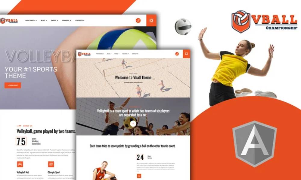 Vball - Easy Volleyball Sport and out door activities Angular Template is a complete Angular template build on the latest Angular version, and all the components included in the product are react components with no jQuery included.