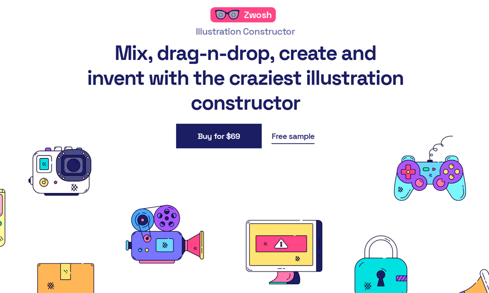 We would like to submit a beautiful landing page for our newest Illstration Constructor - Zwosh! This is amazing illustrations pack with 230+ items and premade scenes.